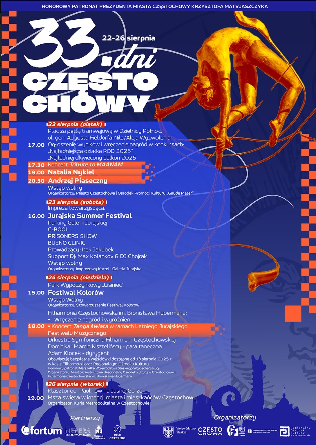 A poniżej – szczegóły programu 33. Dni Częstochowy i imprez im towarzyszących.