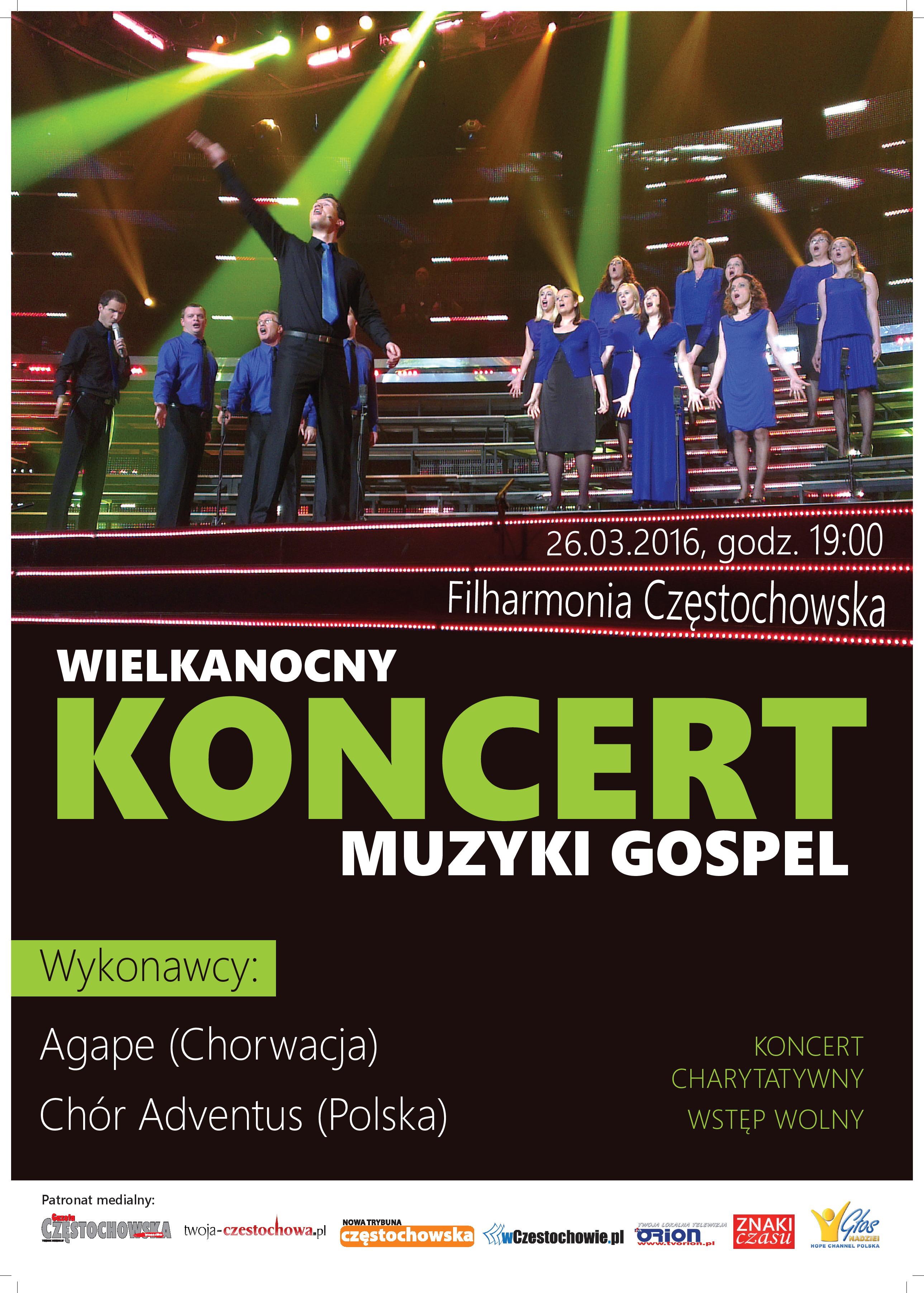 Podczas Wielkanocnego Koncertu Gospel wystąpią: chór Adventus pod batutą Mariusza Gebla oraz międzynarodowej sławy chorwacki zespół Agape, który wielokrotnie występował na różnych estradach całej Europy. Ostatnio z sukcesem brał udział w telewizyjnych konkursach muzycznych.