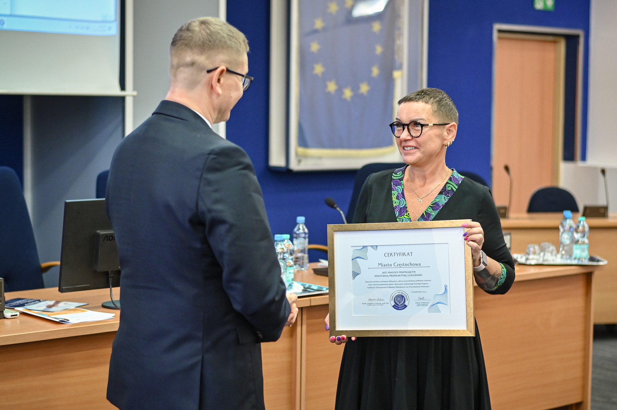 Sam symboliczny dokument „Gmina Promująca Profilaktykę Uzależnień” odebrał od dr hab. Magdaleny Szafranek prezydent Krzysztof Matyjaszczyk. Podkreślił od razu, że to tak naprawdę wyraz uznania dla pracy różnych środowisk zgromadzonych na sali. A uczestnikami spotkania byli pracownicy socjalni, pedagodzy, wychowawcy, terapeuci, kuratorzy, osoby pracujące bezpośrednio z ludźmi uzależnionymi, przedstawiciele sądów, funkcjonariusze policji. Prezydent Częstochowy podziękował też swojemu zastępcy Ryszardowi Stefaniakowi, stojącemu na czele Miejskiej Komisji Rozwiązywania Problemów Alkoholowych i w ogóle zajmującemu się całokształtem polityki społecznej w mieście.