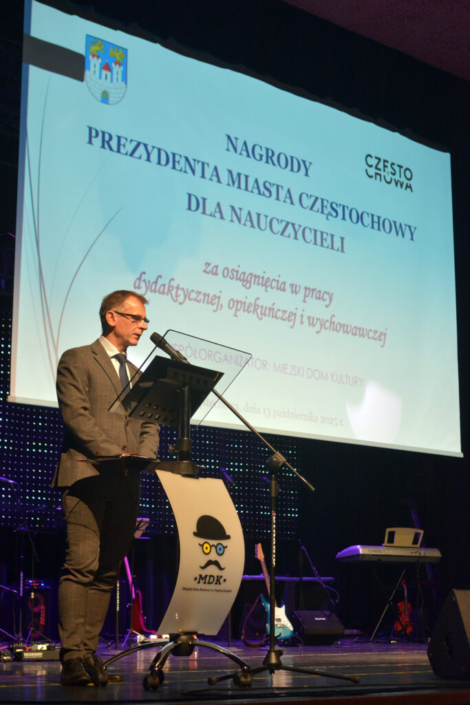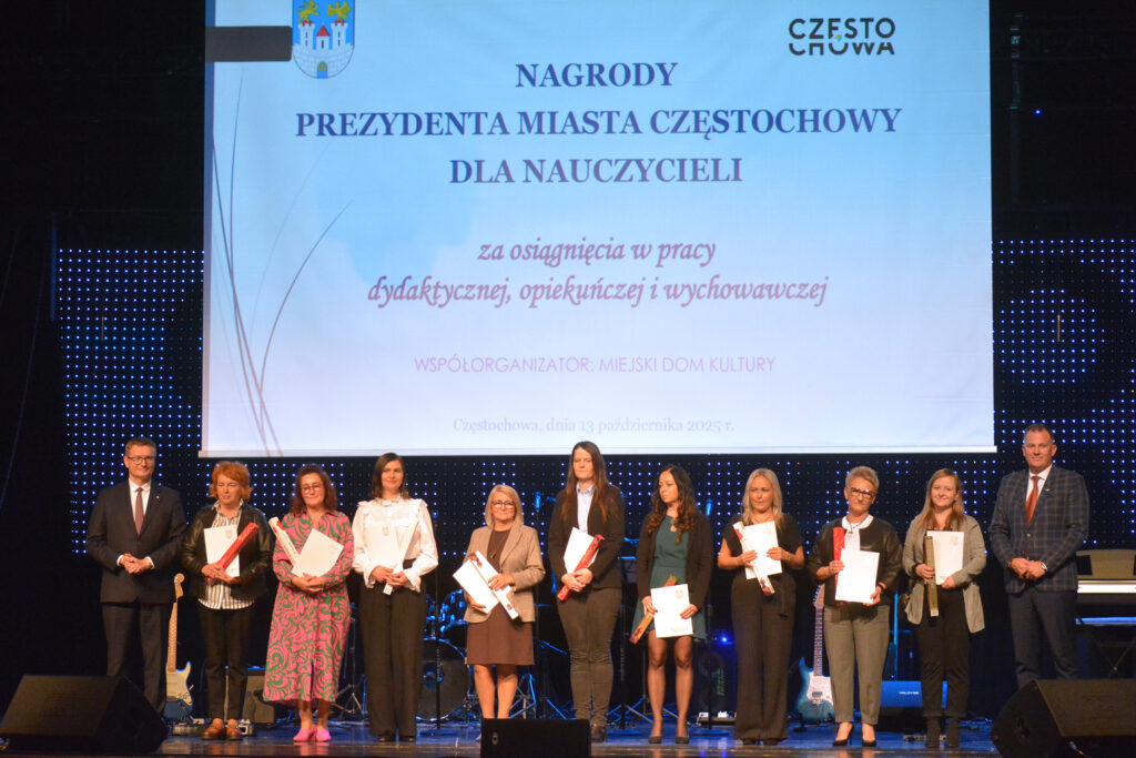 Pedagogom i pracownikom placówek edukacyjnych nagrody wręczali prezydent Częstochowy Krzysztof Matyjaszczyk i przewodniczący Rady Miasta Częstochowy Łukasz Banaś.