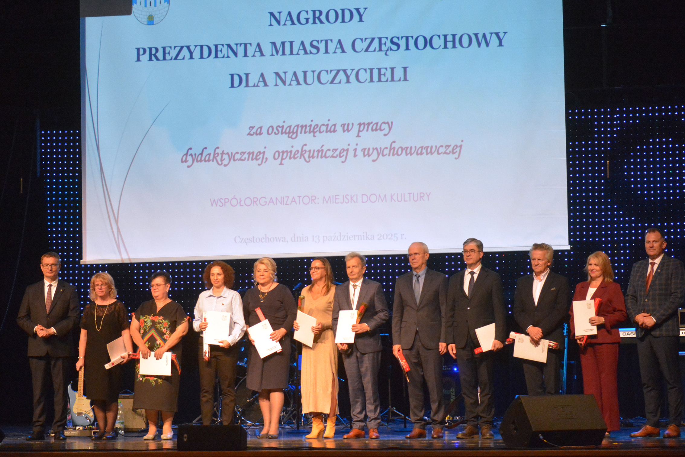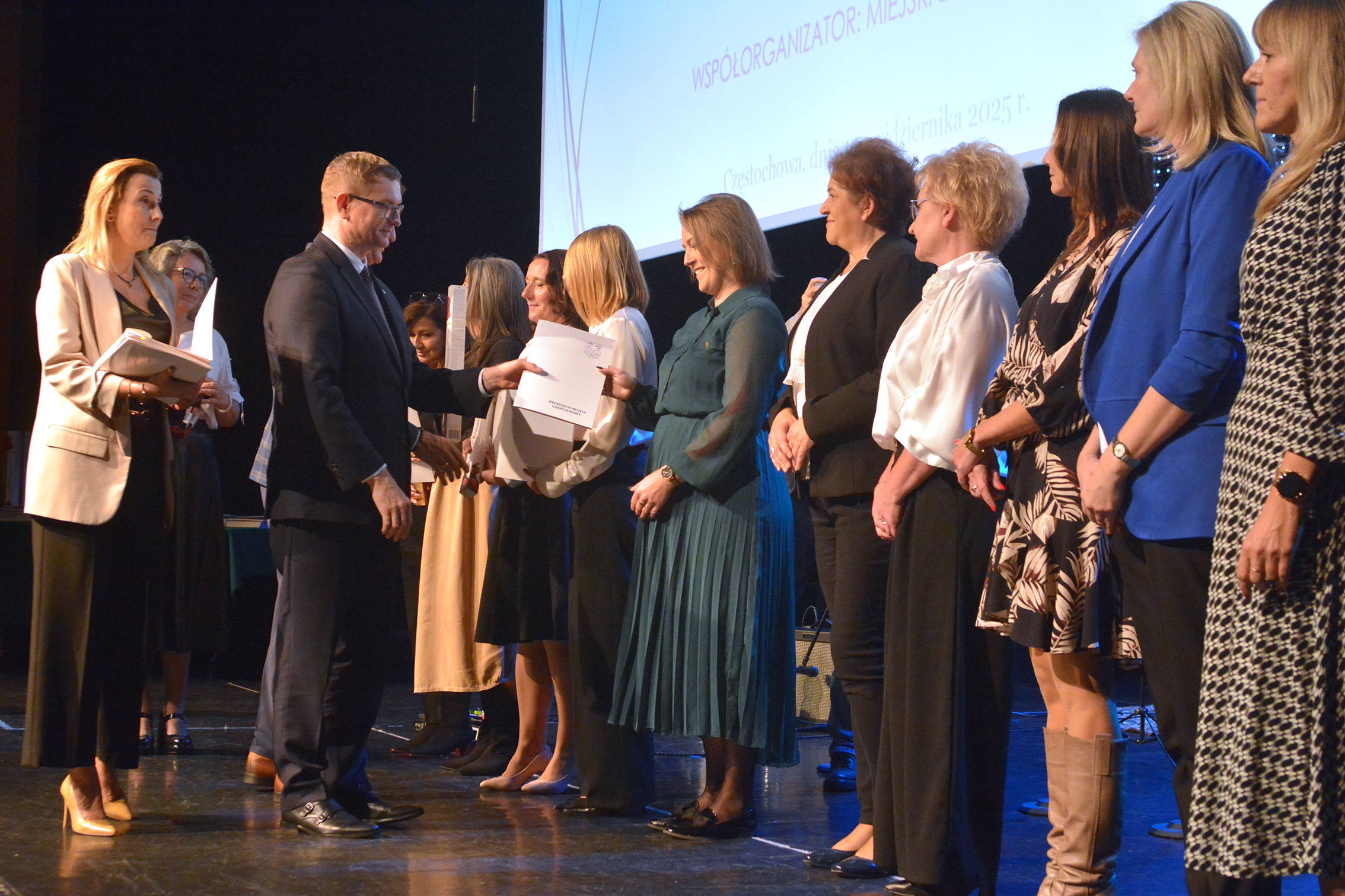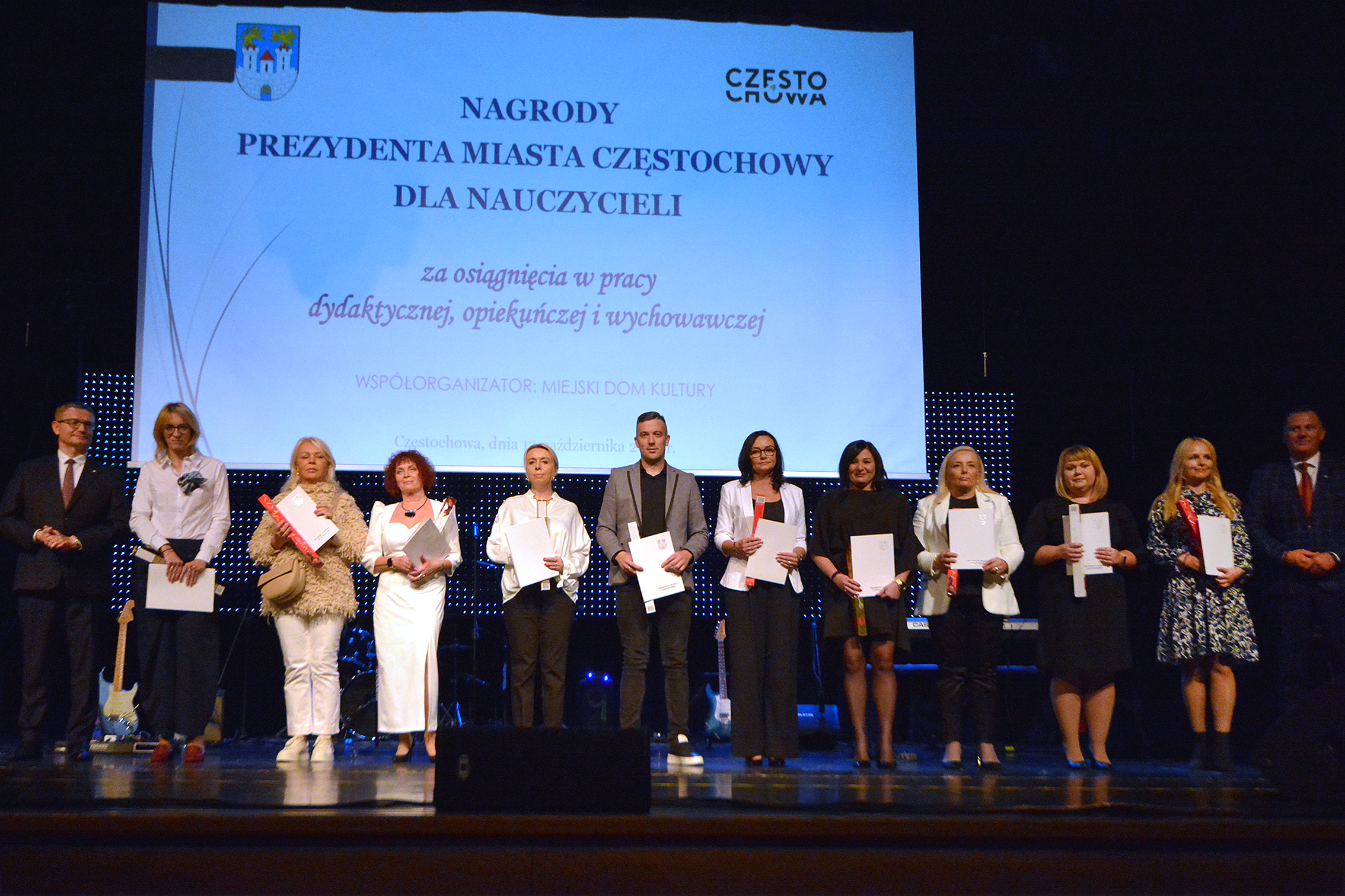 Pedagogom i pracownikom placówek edukacyjnych nagrody wręczali prezydent Częstochowy Krzysztof Matyjaszczyk i przewodniczący Rady Miasta Częstochowy Łukasz Banaś.