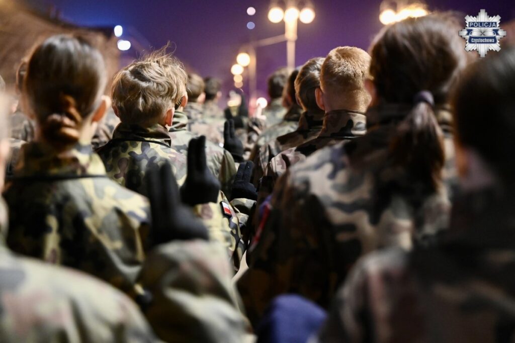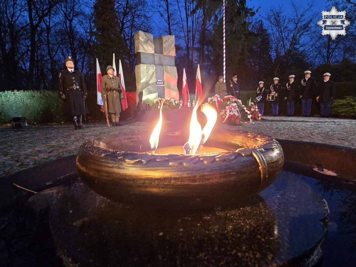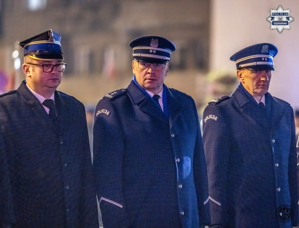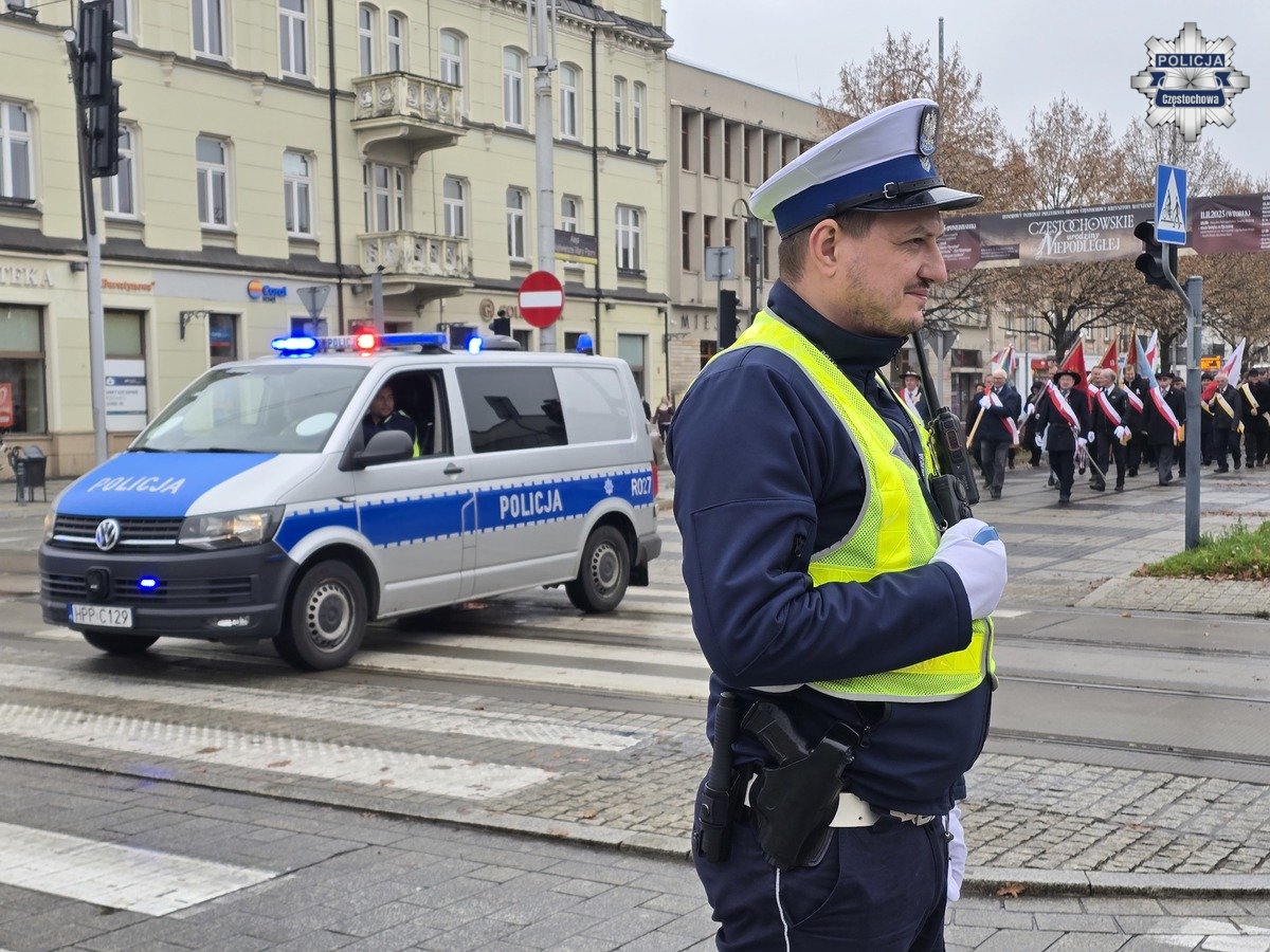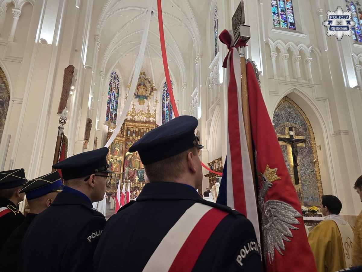 O godzinie 10 delegacja częstochowskiej komendy z młodszym inspektorem Sławomirem Zagrobelnym na czele uczestniczyła we mszy świętej za ojczyznę w Bazylice Archikatedralnej Świętej Rodziny. Po mszy uczestnicy przemaszerowali na plac Daszyńskiego, gdzie złożyli wiązanki pod pomnikiem Papieża Jana Pawła II. Podczas dalszego przemarszu złożony został hołd pod tablicą upamiętniającą generała Stanisława Sojczyńskiego „Warszyca”, a następnie pod pomnikiem marszałka Józefa Piłsudskiego. Na zakończenie delegacje uczciły pamięć poległych składając kwiaty przy Grobie Nieznanego Żołnierza oraz przy pomniku księdza Jerzego Popiełuszki w alei Sienkiewicza.