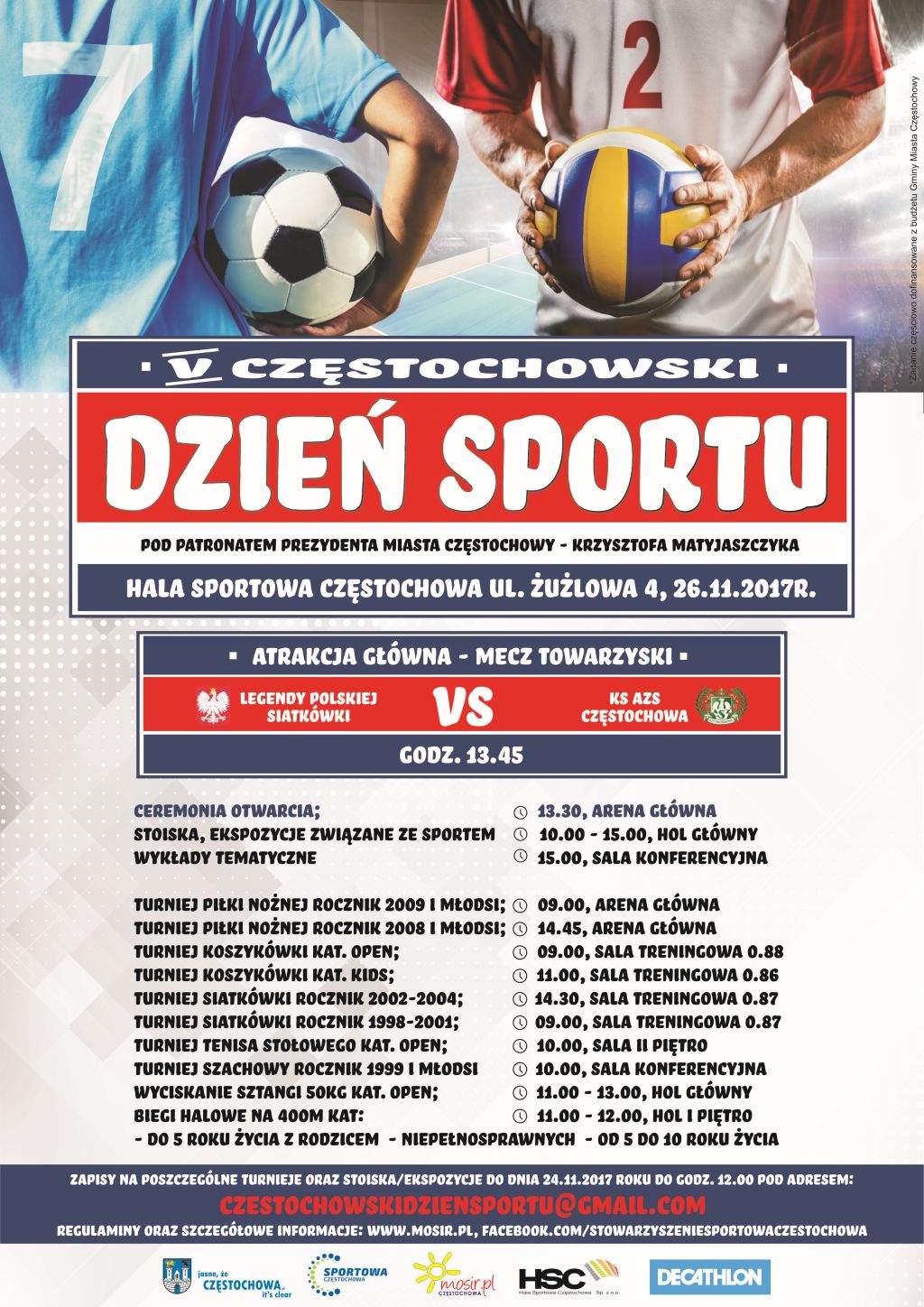 Wydarzeniem tegorocznej edycji Częstochowskiego Dnia Sportu będzie mecz siatkówki. Legendy Polskiej Siatkówki zmierzą się z AZS-em Częstochowa. Na parkiecie pojawią się: Andrzej Stelmach, Krzysztof Stelmach, Grzegorz Szymański, Paweł Gacek, Paweł Tomaszewski, Krzysztof Gierczyński, Marcin Tarka, Robert Szczerbaniuk. Drużynę Legend Polskiej Siatkówki poprowadzi Damian Dacewicz.