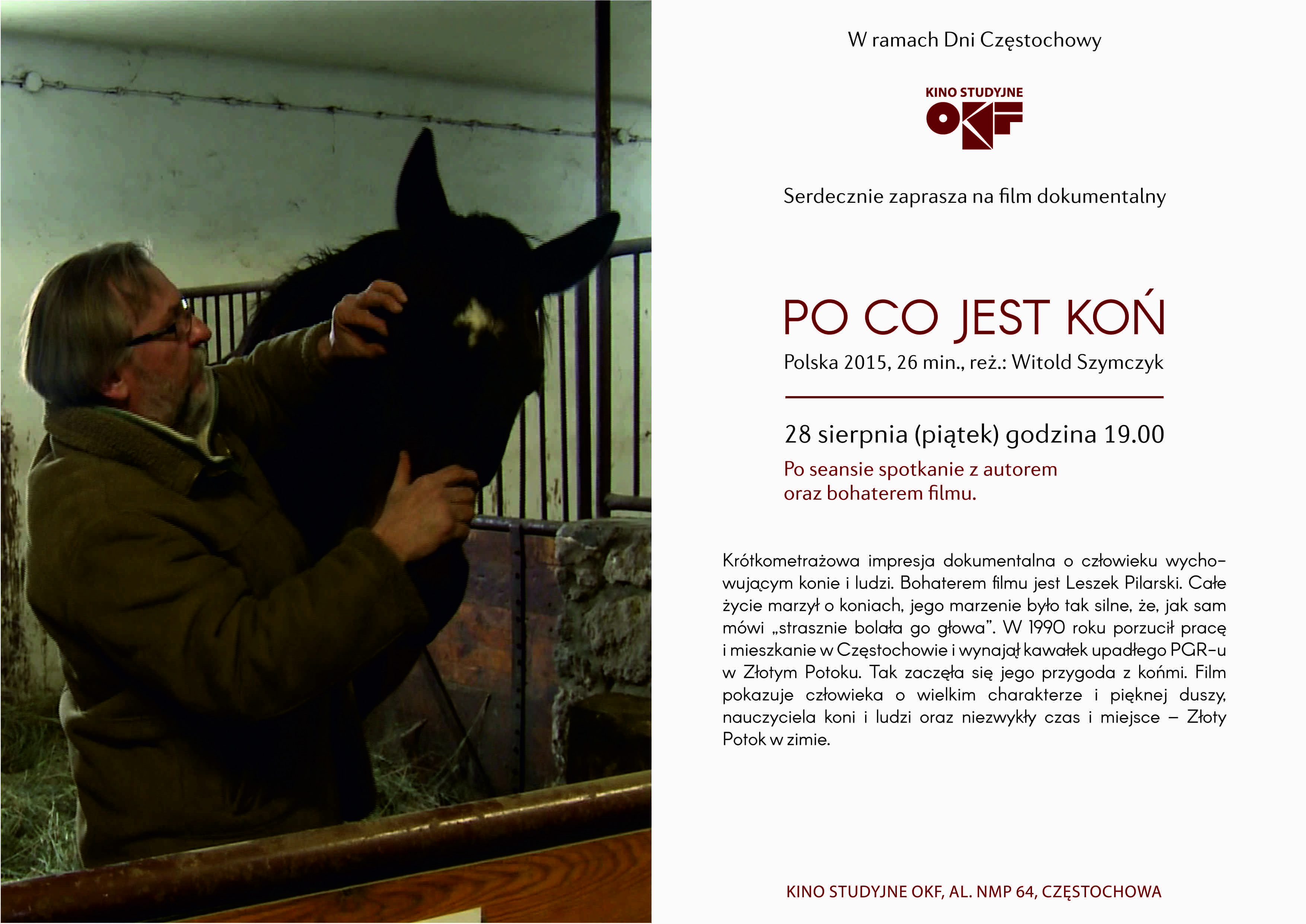Pierwszy film w reżyserii Witolda Szymczyka „Po co jest koń” można będzie zobaczyć w najbliższy piątek, 28 sierpnia o godz. 19. Druga produkcja, której reżyserem jest Michał Tkaczyński, zostanie wyświetlona w sobotę, 29 sierpnia o godz. 16.15.