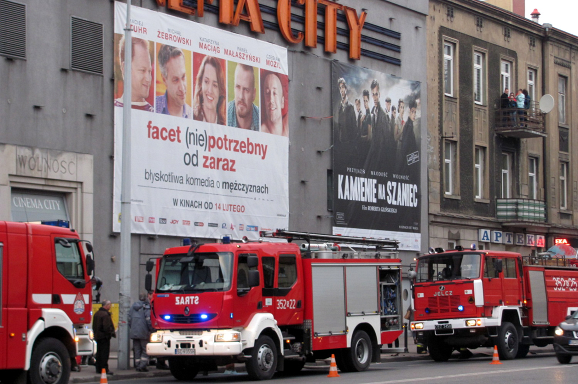 W środę przed godz. 17 wozy strażackie stanęły przed Cinema City przy al. Wolności. Jak się okazało dym wydobywał się z pojemnika na niedopałki i śmieci. Na szczęście nie doszło do pożaru.