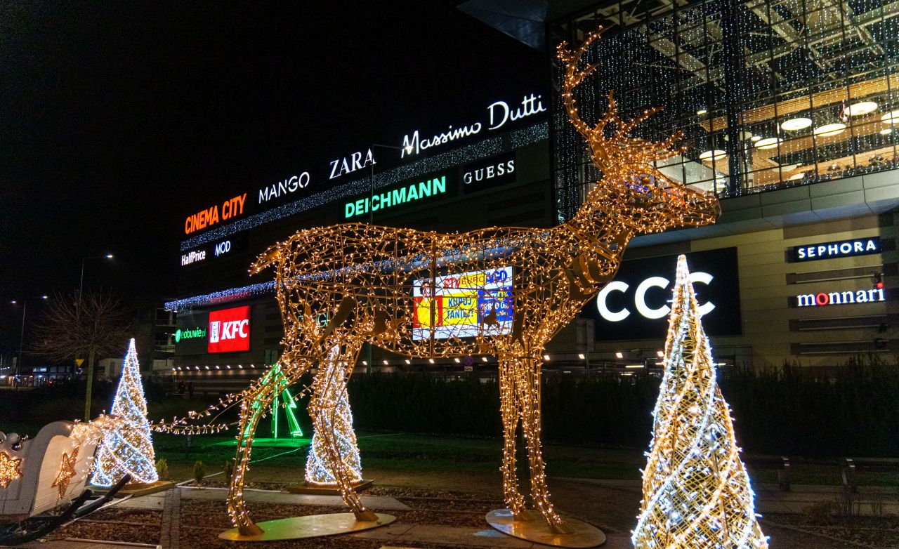 Na samej elewacji zamontowano aż sześć świetlnych, złoto-srebrnych śnieżynek, które mają nawet po 3 metry wysokości. Na lampach przed centrum pojawiły się natomiast kurtyny z lampek. Przed wejściem do galerii stanęła z kolei olbrzymia, mająca 4 metry wysokości bombka, do której można wejść i zrobić sobie selfie.