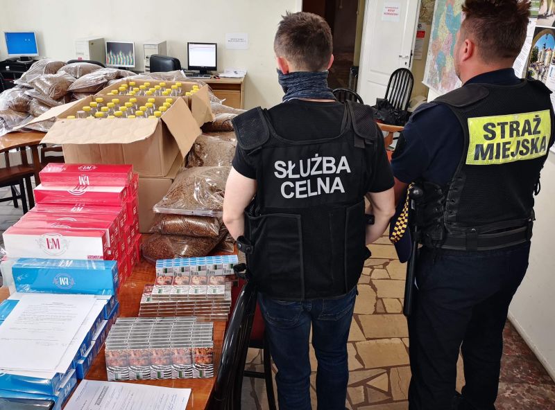 W trakcie wykonywanych dalszych czynności służbowych celnicy i strażnicy miejscy ujawnili i zabezpieczyli 9520 sztuk papierosów bez polskich znaków akcyzy, 82 kilogramy tytoniu luzem bez polskich znaków akcyzy oraz 97 butelek z alkoholem niewiadomego pochodzenia bez polskich znaków akcyzy, które należały do 59-letniego mężczyzny.