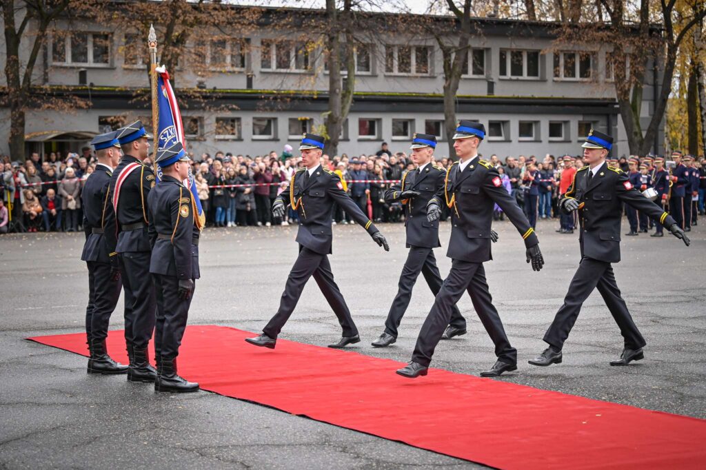 Wśród gości zwracających się do kadetów był także prezydent Częstochowy Krzysztof Matyjaszczyk. – Wybieracie służbę, do której społeczeństwo ma ogromne zaufanie – i słusznie, bo na strażaków zawsze można liczyć – mówił m.in. prezydent. – Niech czas spędzony w Szkole pozwoli Wam zdobyć wiedzę, umiejętności i postawę, które będą Wam towarzyszyć w wykonywaniu misji strażaka. Bądźcie skuteczni, odważni i godni zaufania – tak, aby mieszkańcy miejsc, w których będziecie pełnić służbę, mogli zawsze na Was liczyć.