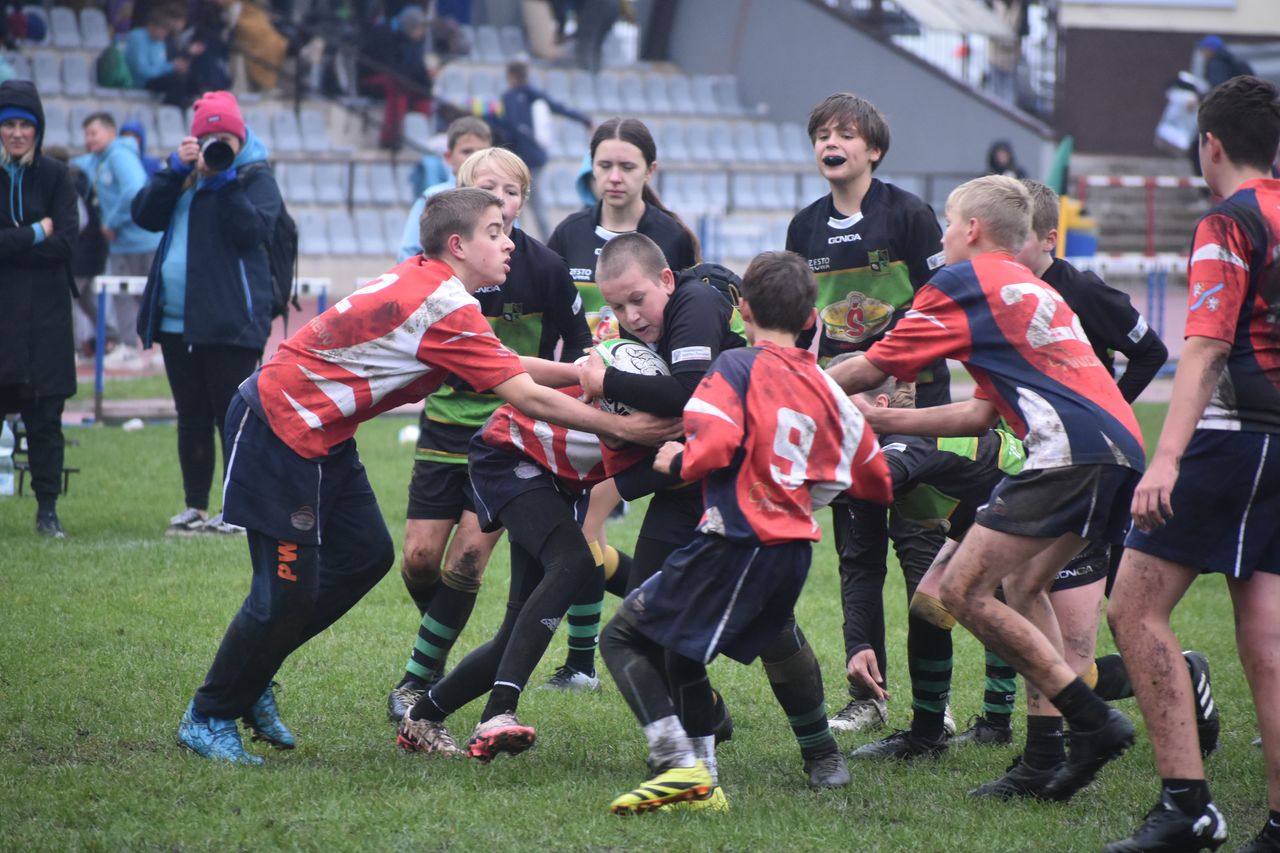 W każdej z kategorii drużyny rozegrały mecze w systemie „każdy z każdym”. U zawodników widać było dużą ambicję i wolę walki. Zwłaszcza że zmagali się nie tylko z przeciwnikiem, ale także z bardzo trudnymi warunkami atmosferycznymi – chłodem, padającym deszczem i grząską murawą. Mimo tego ich zaangażowanie w grę było wciąż na bardzo wysokim poziomie. A w przerwach między meczami dogrzewali się herbatą i drobnymi przekąskami z przygotowanej przez rodziców naszych zawodników strefy gastronomicznej. Na koniec wszyscy młodzi rugbiści otrzymali pamiątkowe medale i mogli posilić się pyszną pizzą.