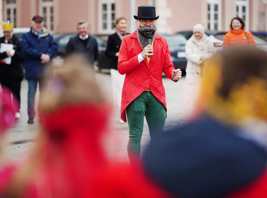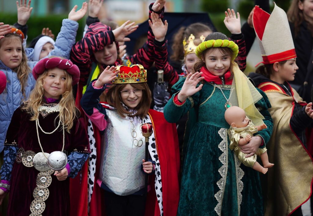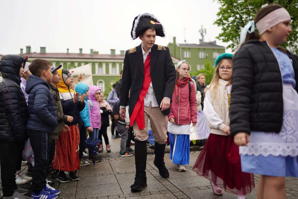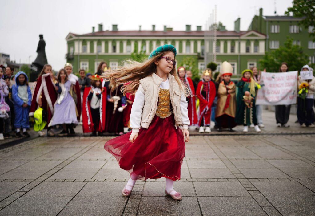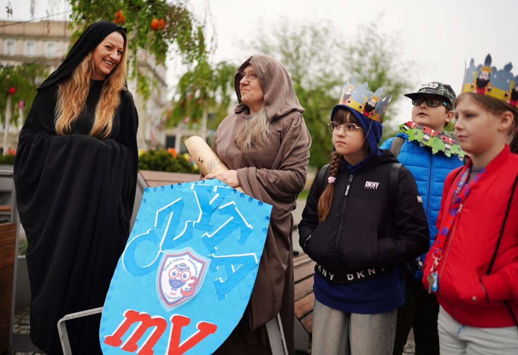 Orszak doszedł przed Ratusz na placu Biegańskiego, gdzie wyjaśniło się, kto za kogo jest przebrany i z kart którego tekstu literackiego zszedł na częstochowską ziemię.