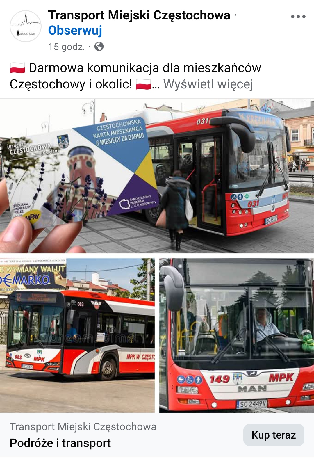 Pół roku nielimitowanych przejazdów za jedyne 8,99 zł. Taka okazja pojawiła się na Facebooku. 10 czerwca pojawiła się strona o nazwie „Transport Miejski Częstochowa”, która oferuje 500 kart w promocyjnej cenie.