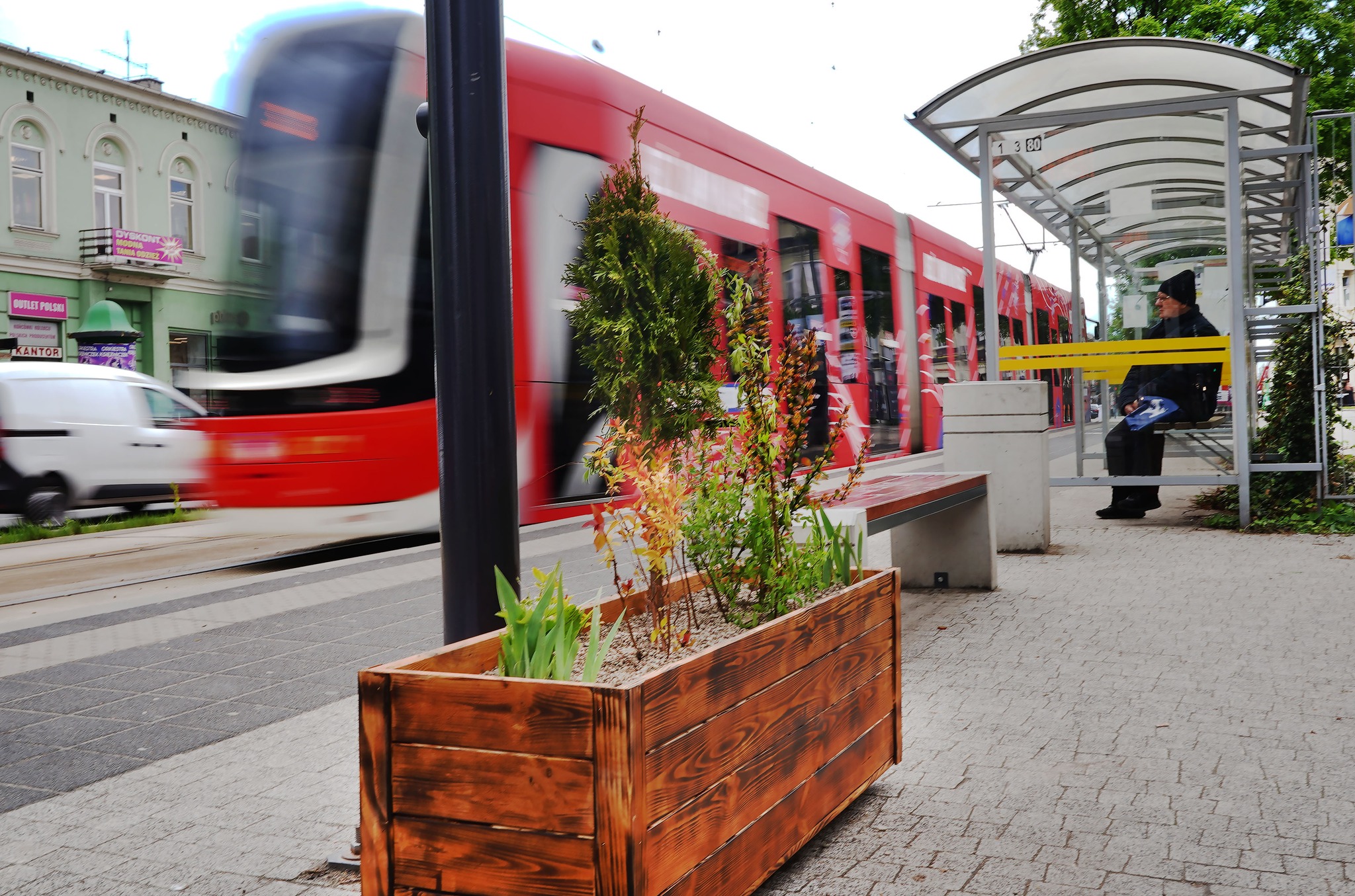 W kilku lokalizacjach zamontowane zostały kompaktowe, drewniane donice z roślinnością ozdobną różnych, odpornych na miejskie warunki, gatunków. Na początek dziesięć sztuk.