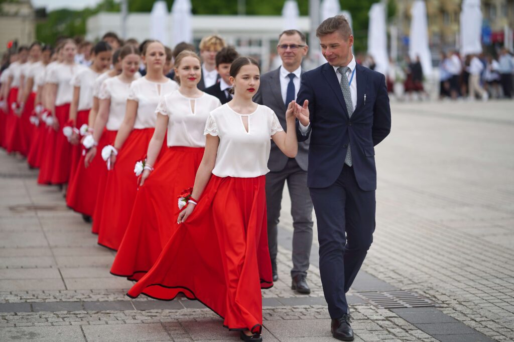 Kilkuset uczniów i uczennic szkół podstawowych z okazji rocznicy Konstytucji 3 Maja odtańczyło ten uroczysty taniec na placu Biegańskiego.