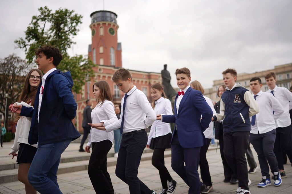 Do młodzieży dołączyli m.in. zastępca prezydenta Częstochowy Łukasz Pabiś oraz naczelnik Wydziału Edukacji UM Rafał Piotrowski, który zresztą zainicjował pomysł świętowania 3 maja z młodzieżą na taką taneczną modłę…