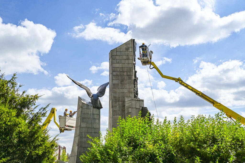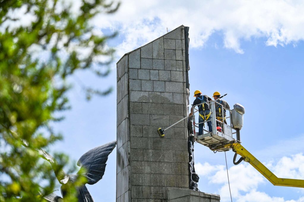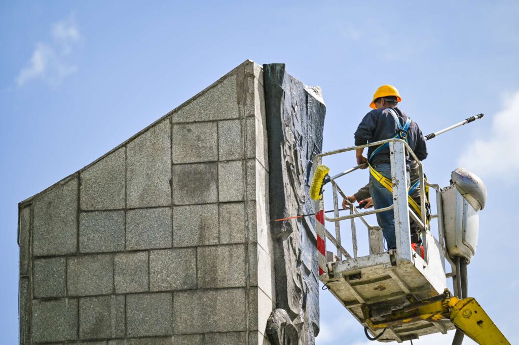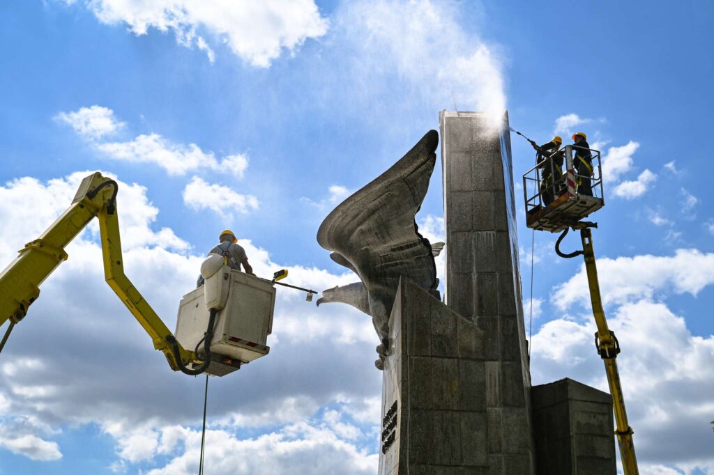 W przypadku pomnika Poległym w Obronie Ojczyzny na placu Pamięci Narodowej konieczne było usunięcie trwałych plam, spowodowanych m.in. działaniem sił natury. Pomnik wymagał dokładnego mycia, usunięcia mchów i zabezpieczenia powierzchni powłoką ochronną. Ze względu na jego wielkość prace wykonywane były z użyciem podnośników.