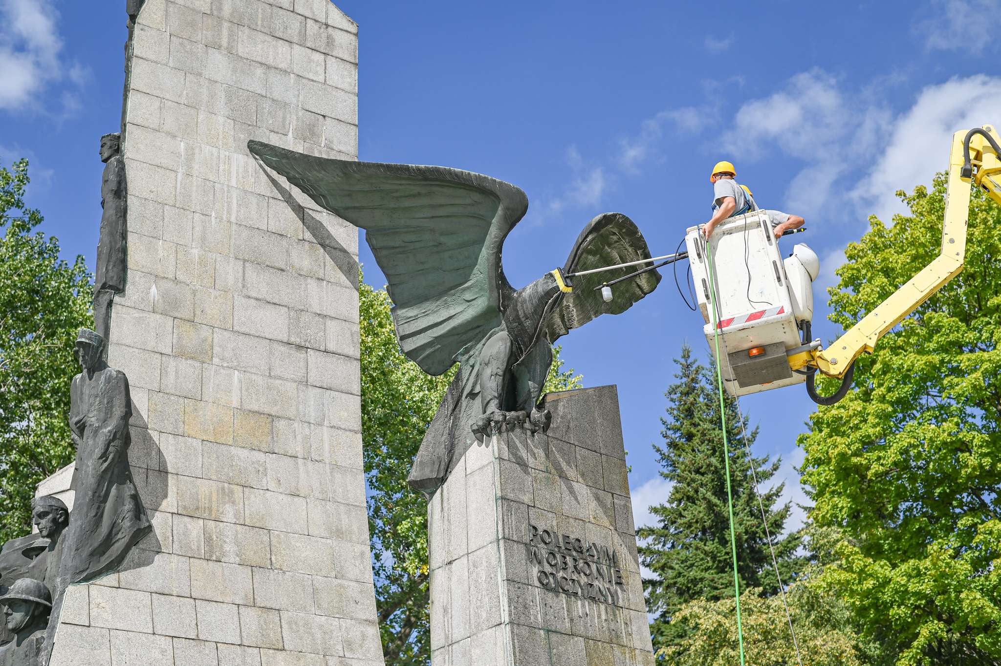 W przypadku pomnika Poległym w Obronie Ojczyzny na placu Pamięci Narodowej konieczne było usunięcie trwałych plam, spowodowanych m.in. działaniem sił natury. Pomnik wymagał dokładnego mycia, usunięcia mchów i zabezpieczenia powierzchni powłoką ochronną. Ze względu na jego wielkość prace wykonywane były z użyciem podnośników.
