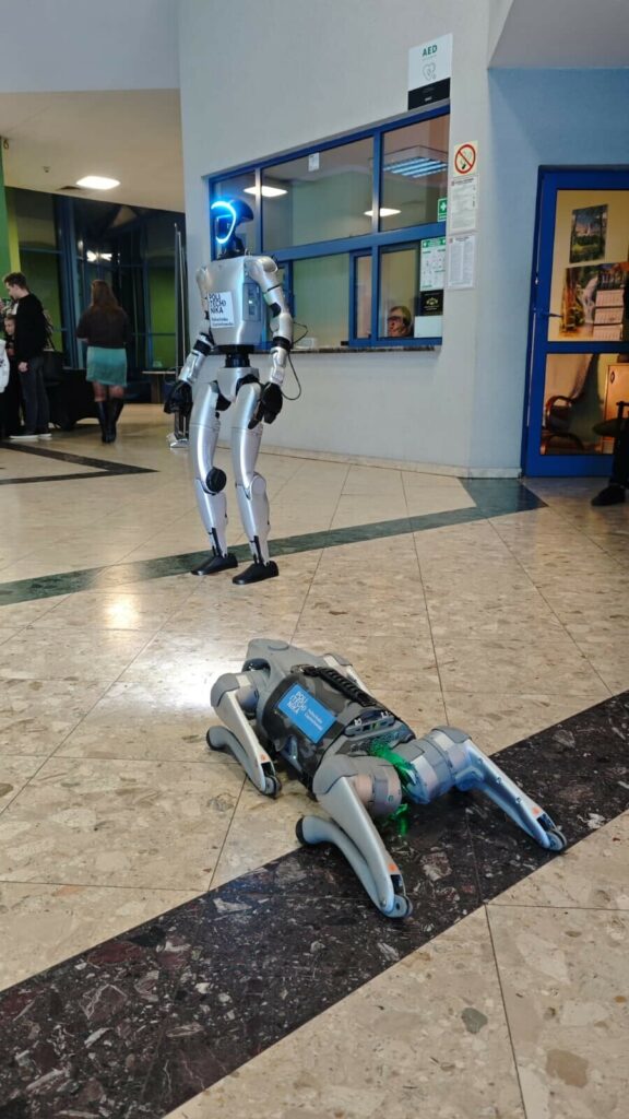 Wyjątkową atrakcją był pokaz CZESTera – zrobotyzowanego psa z systemem skanowania laserowego i oczywiście naszego nowego robota humanoidalnego Unitree G1.