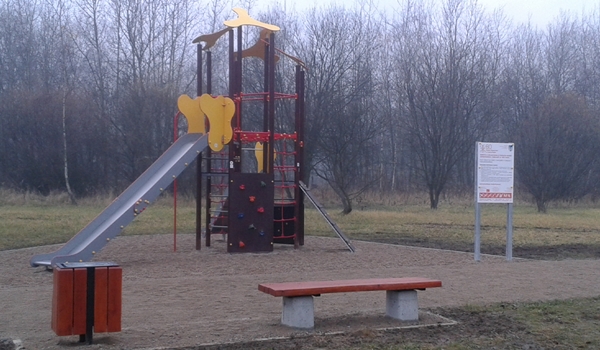 W ramach zadania wykonano drobne prace rozbiórkowe oraz roboty ziemne związane z niwelacją terenu. Na bezpiecznej nawierzchni żwirowej zamontowano wielofunkcyjne urządzenie zabawowe składające się m.in. z drabinki poziomej i pionowej, linarium, ścianki wspinaczkowej, wieży oraz zjeżdżalni. Zainstalowano też elementy małej architektury – ławkę, kosz na śmieci oraz tablicę informacyjną. Ponadto wyrównano i oczyszczono przyległy teren.