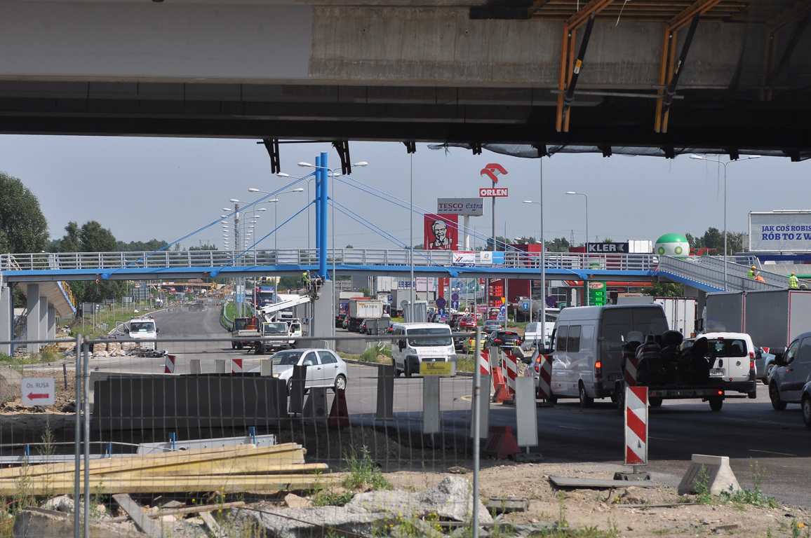 Wkrótce gotowy będzie główny wiadukt, do którego dobudowywane są wjazdu. Potem drogowcy położą na nim asfalt. Na koniec zostaną prace wykończeniowe, czyli montaż barier, wygrodzeń i oznakowanie. Niemal gotowa jest już kładka dla pieszych nad DK-1, na której rozpoczęły się próby obciążeniowe.