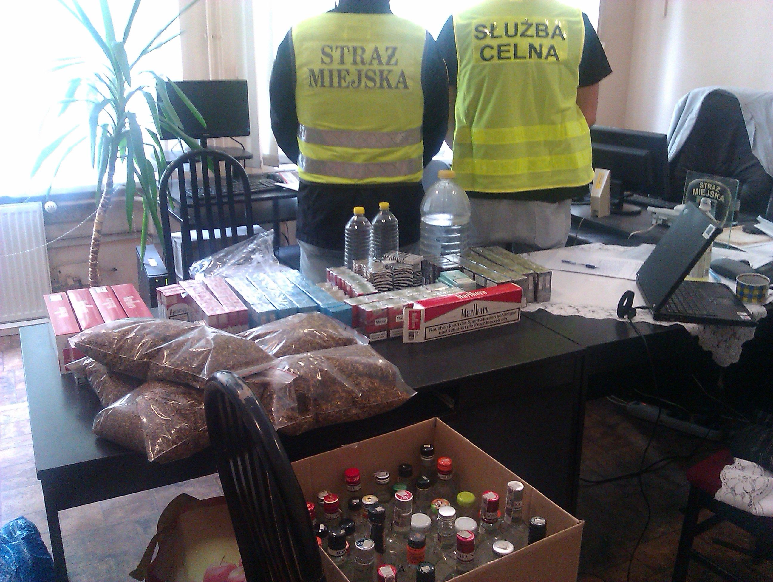 Podczas obserwowania jednej z posesji w rejonie parku 3-go Maja strażnicy miejscy zauważyli osobę, którą kupiła alkohol niewiadomego pochodzenia w miejscu nielegalne sprzedaży. 51-letnia właścicielka mieszkania została wezwana do dobrowolnego wydania wszelkich towarów zabronionych prawem. W wyniku dalszego przeszukania funkcjonariusze ujawnili łącznie prawie 8 litrów alkoholu niewiadomego pochodzenia bez polskich znaków akcyzy. Było to 14 butelek o pojemności 0,5 litra i mocy 32% oraz 1 butelka o pojemności 0,95 litra i mocy 90%. Wartość zatrzymanego towaru wyceniono na ponad 340 zł.