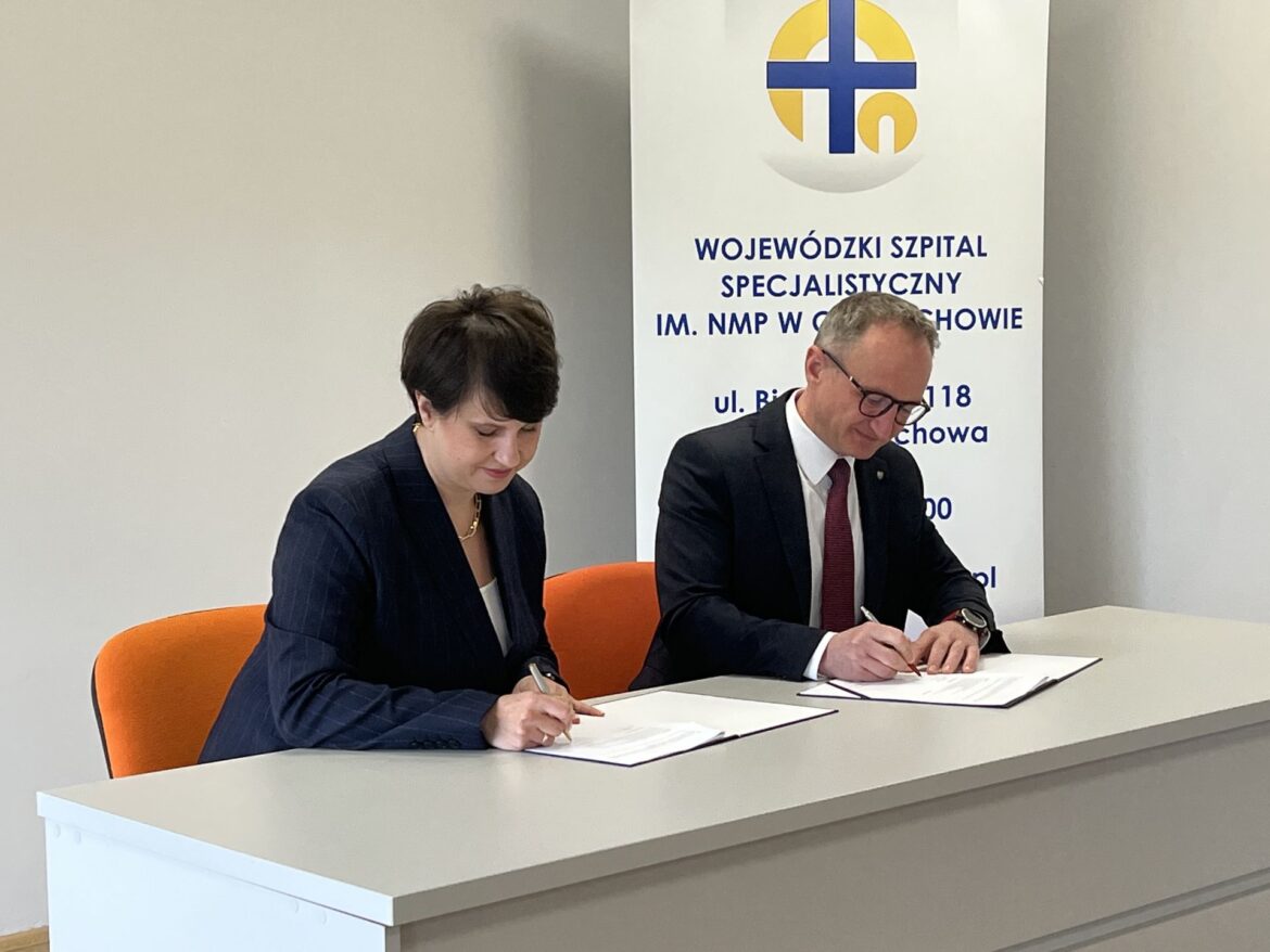 Umowę parafowali wicemarszałek województwa śląskiego Grzegorz Boski, a także p.o. dyrektora Wojewódzkiego Szpitala Specjalistycznego w Częstochowie Beata Pochodnia.