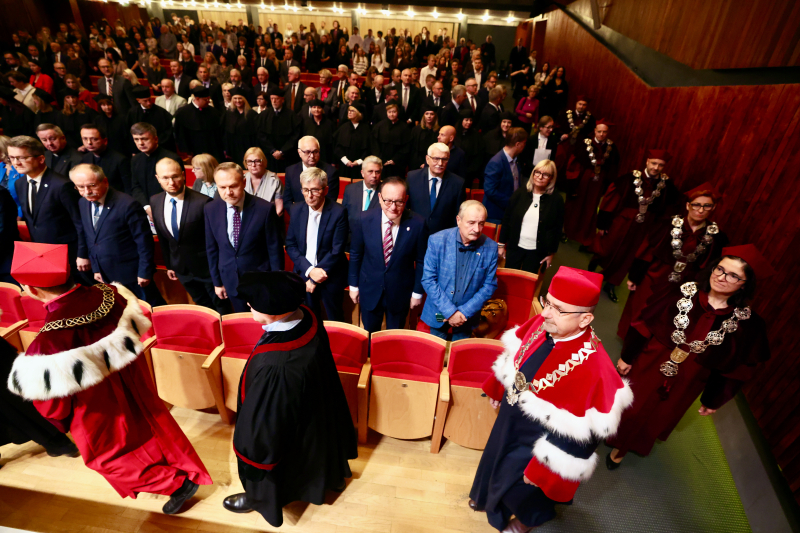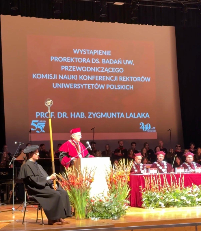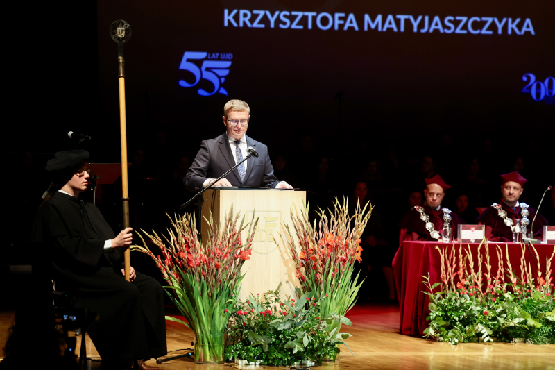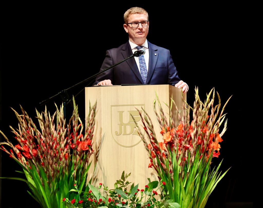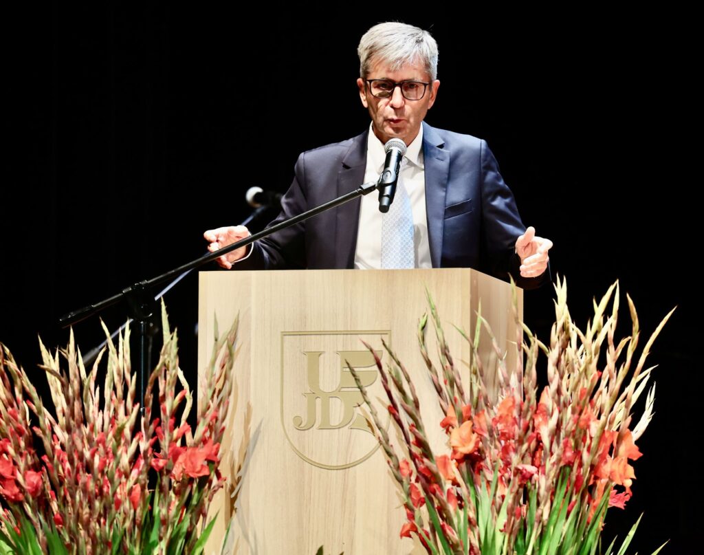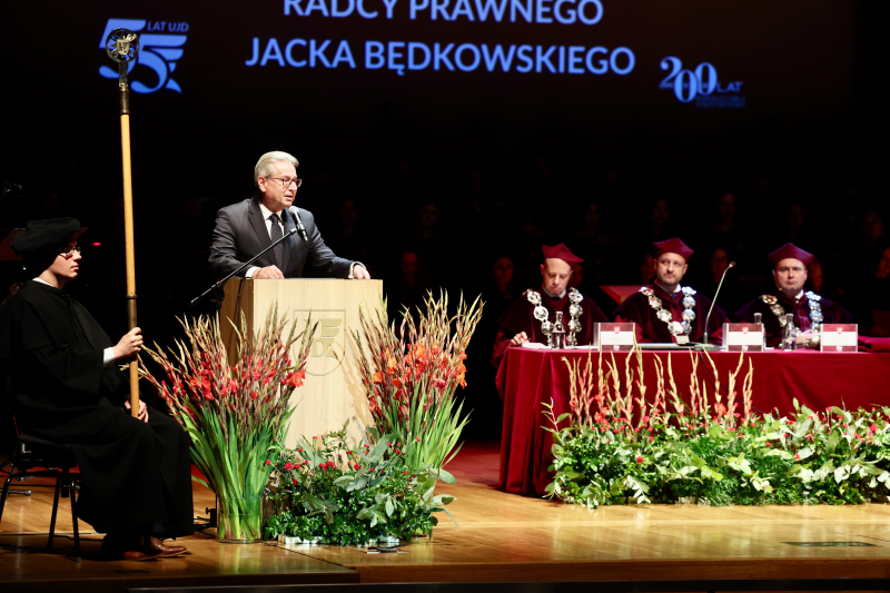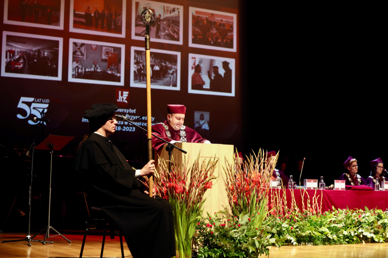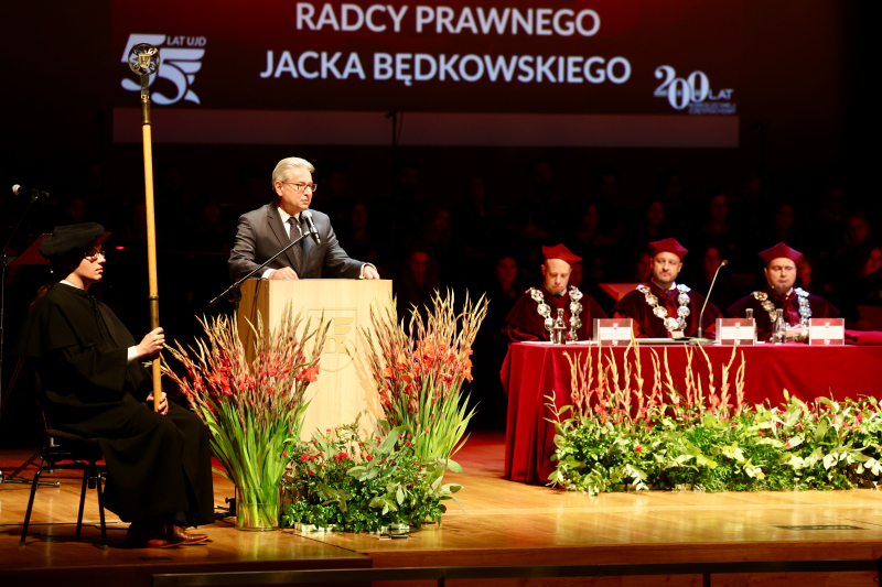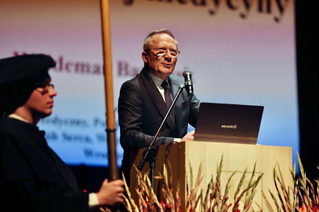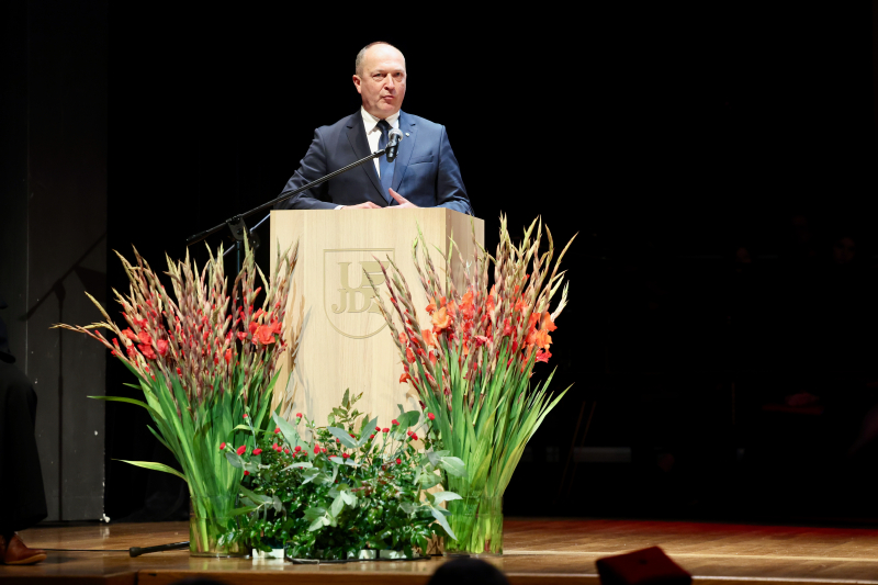 Wykład inaugurujący rok akademicki 2025/2026 zatytułowany „Dylematy współczesnej medycyny” wygłosił prof. dr hab. n.med. Waldemar Banasiak. O muzyczną oprawę uroczystości zadbali członkowie Chóru Akademickiego UJD pod dyrekcją dr. Marka Kudry.