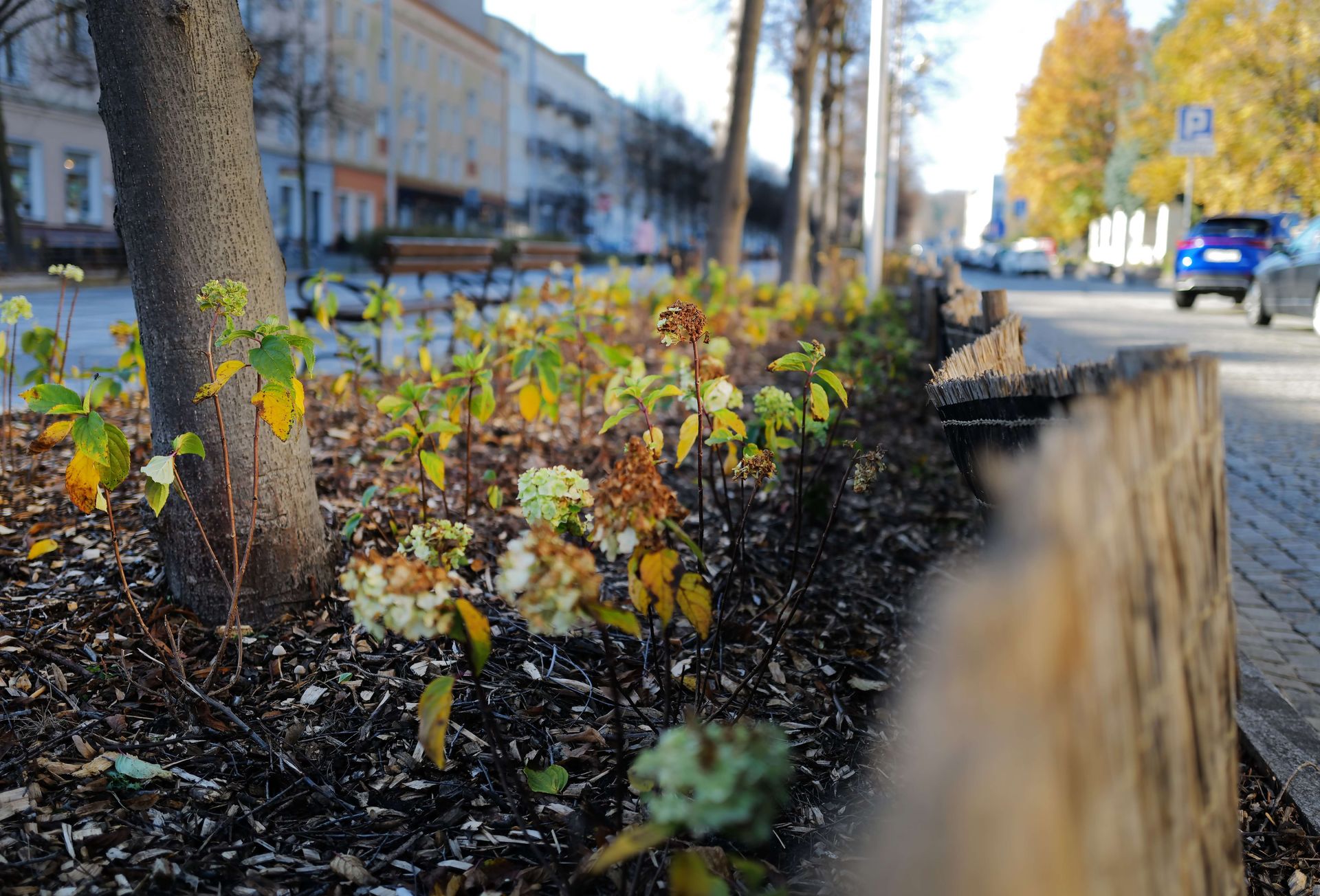 Wśród nowych nasadzeń znalazły się gatunki ozdobne, które dobrze sprawdzają się w warunkach miejskich i zapewniają efekt przez większą część roku: kalina koralowa, hortensja bukietowa, tawuła nippońska, śnieguliczka Chenaulta, tawulec pogięty oraz żylistek wysmukły.