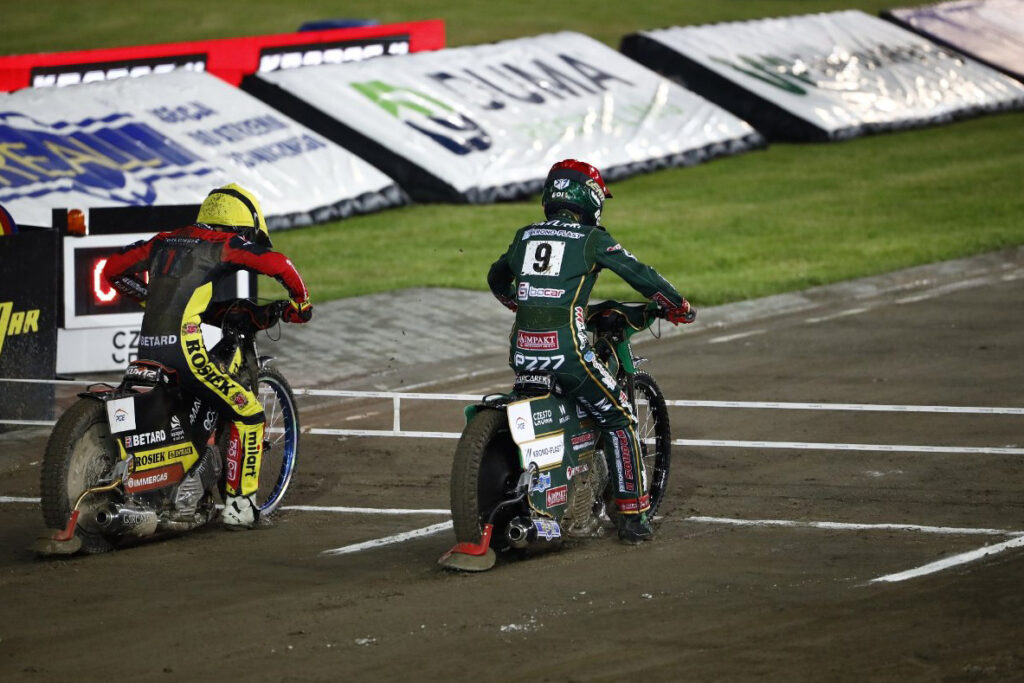 Do niecodziennej sytuacji doszło w ósmej gonitwie. Bieg wystartował w trzyosobowym w składzie, ponieważ wykluczony z meczu był Kowalski. W trakcie wyścigu upadek zaliczył Artiom Łaguta. W powtórce pojechała tylko para Włókniarza – Kacper Woryna i Kacper Halkiewicz.