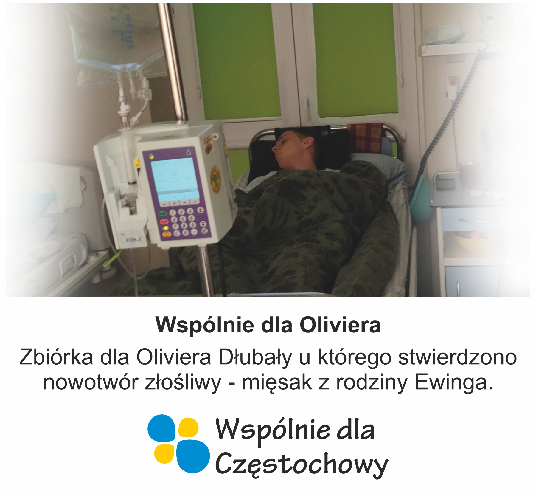 Olivier jest leczony w Instytucie Matki i Dziecka w Warszawie. Przyjmuje chemię według protokołu oraz dodatkową, bardzo kosztowną chemię celowaną, która nie jest refundowana przez NFZ, ale która zwiększa jego szanse na wyleczenie.