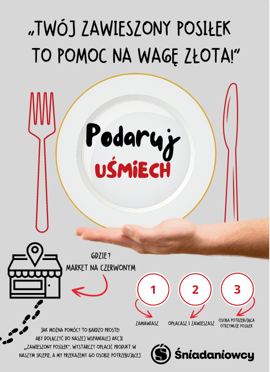 „Śniadaniowcy” w swoim nowo otwartym sklepie stacjonarnym przy al. Wolności 12 (Market na Czerwonym) w Częstochowie przekazują do swojej lodówki darmowe posiłki, zachęcając także każdego z klientów do przyłączenia się do akcji poprzez zakup produktu oraz jego zawieszenie* z myślą o tych, którzy znajdują się w trudnej sytuacji życiowej.
