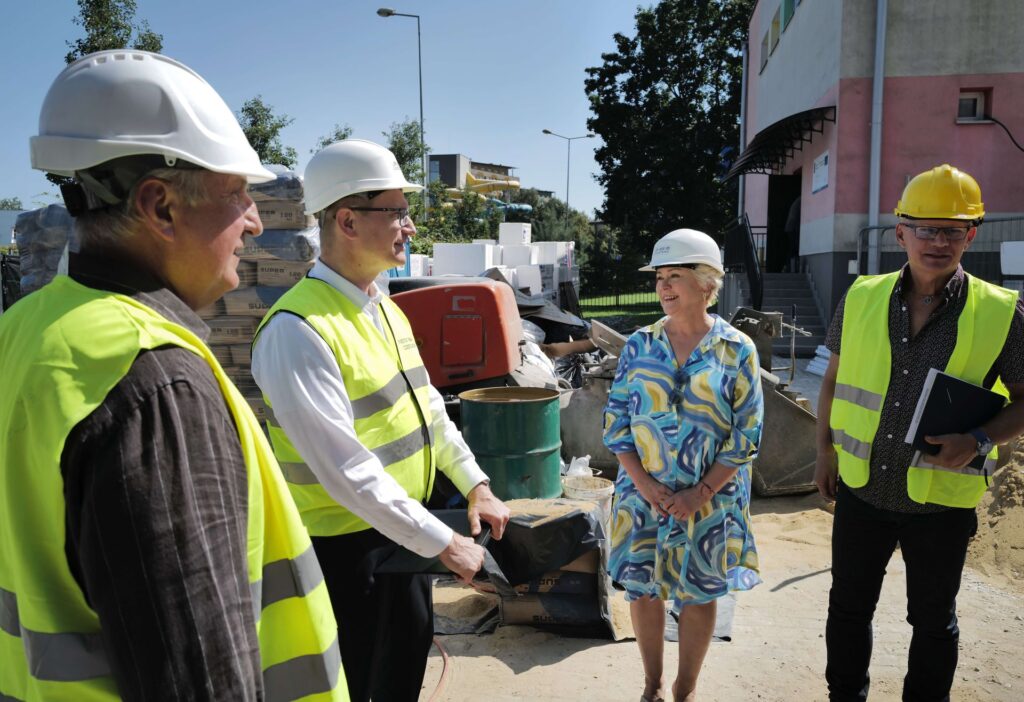 Teren inwestycji odwiedził prezydent Krzysztof Matyjaszczyk, który w towarzystwie m.in. zastępcy naczelnika Wydziału Inwestycji i Zamówień Publicznych Aleksandra Sałackiego i dyrektorki placówki Elżbiety Gajos sprawdzał postępy prac. Obecne ich zaawansowanie widoczne jest na zdjęciach z wizytacji.
